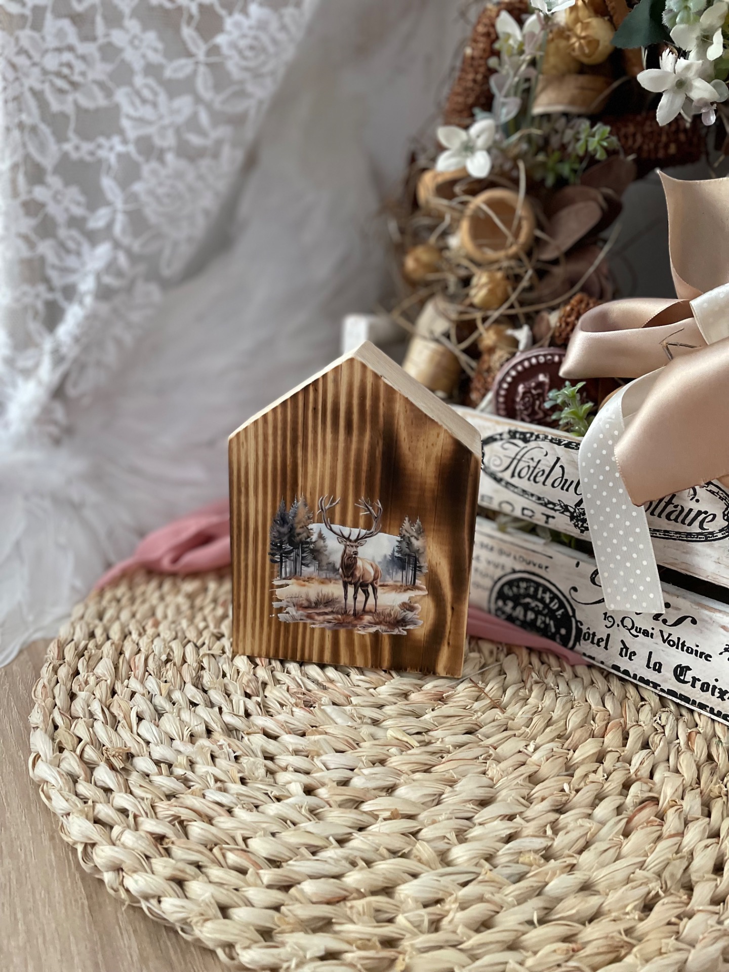 Domeček z masivního dřeva... každý kus je originál, protože je ručně dělaný. Vhodný k dekoraci do interiéru.