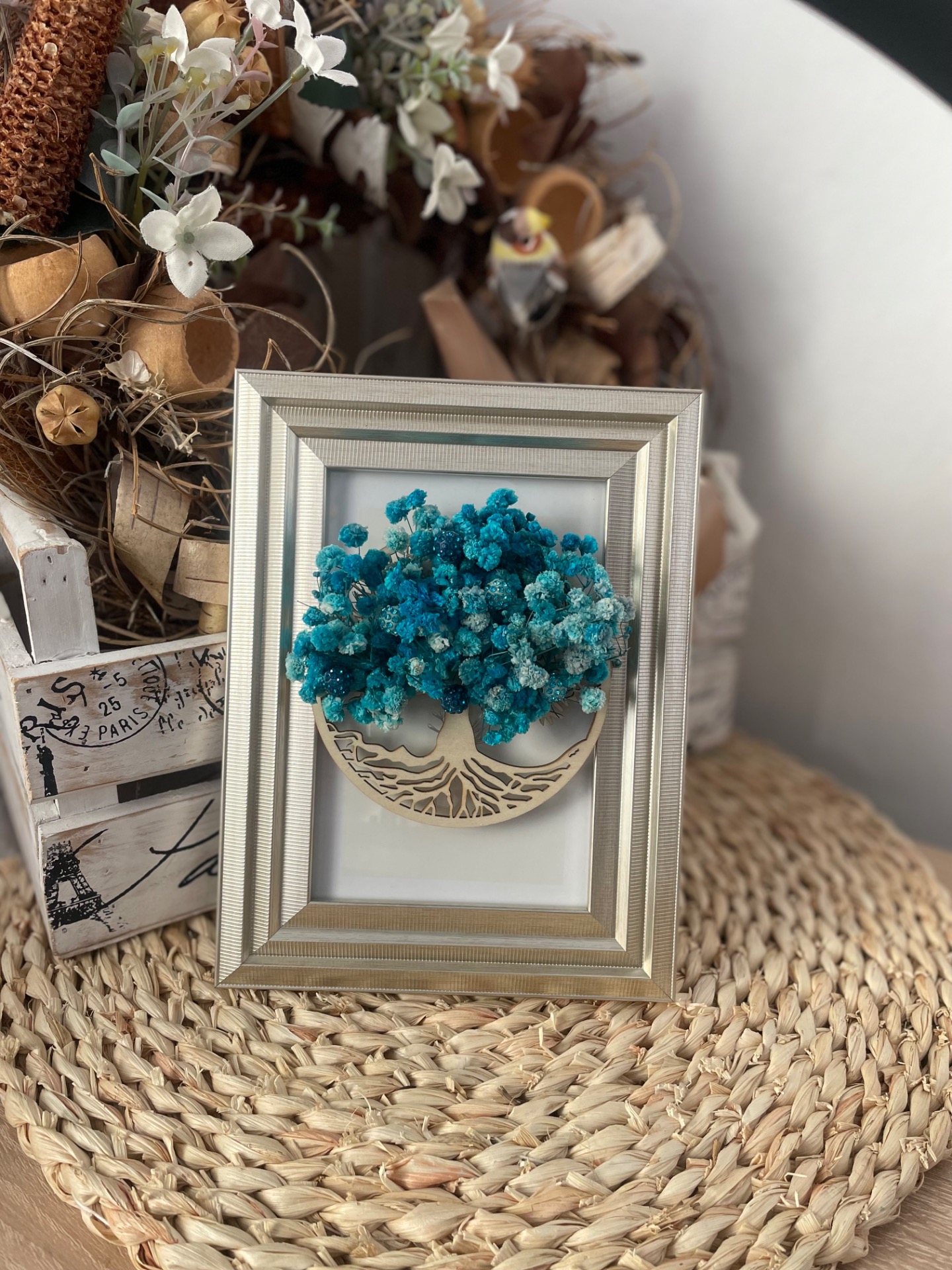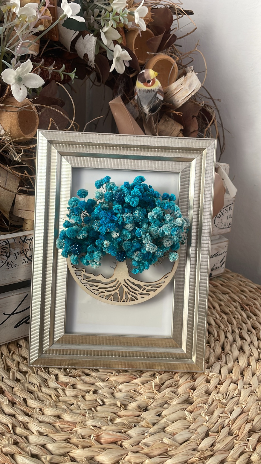 Materiál:dřevo,sklo,stabilizovaný nevěstin závoj