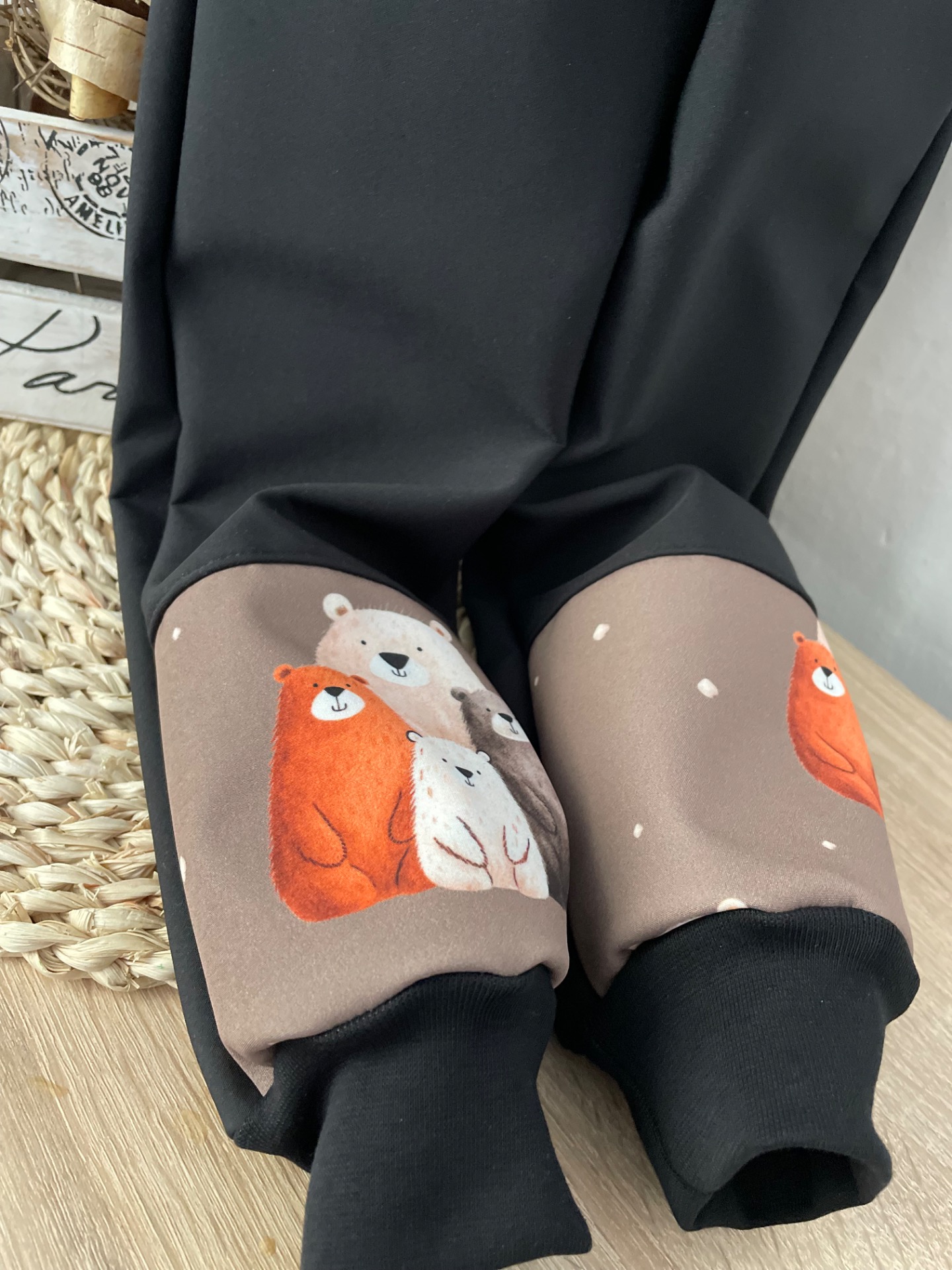 Softschellové kalhoty s fleecem-medvídci, ve velikostech 74 až 104