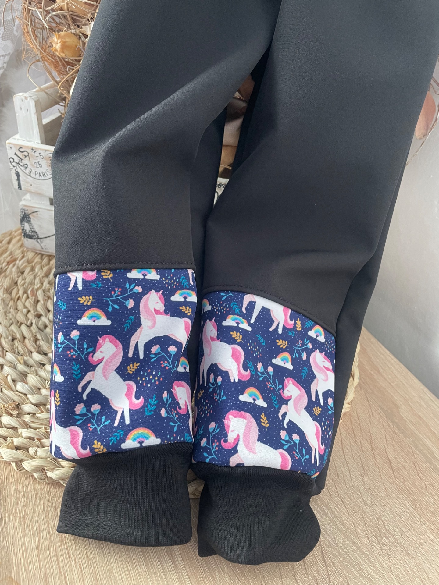 Softschellové kalhoty s fleecem-velikost 92,černé s jednorožci