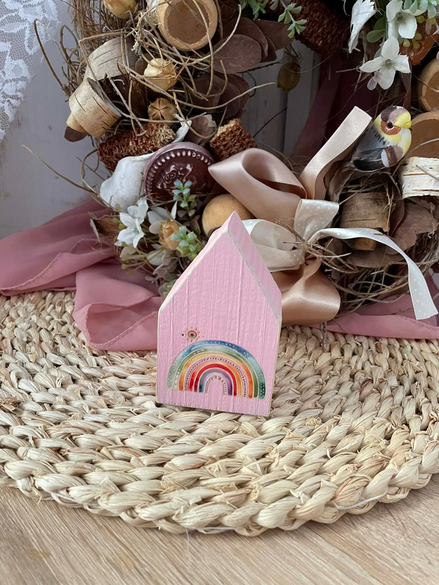 Dřevěný domeček duha-růžový