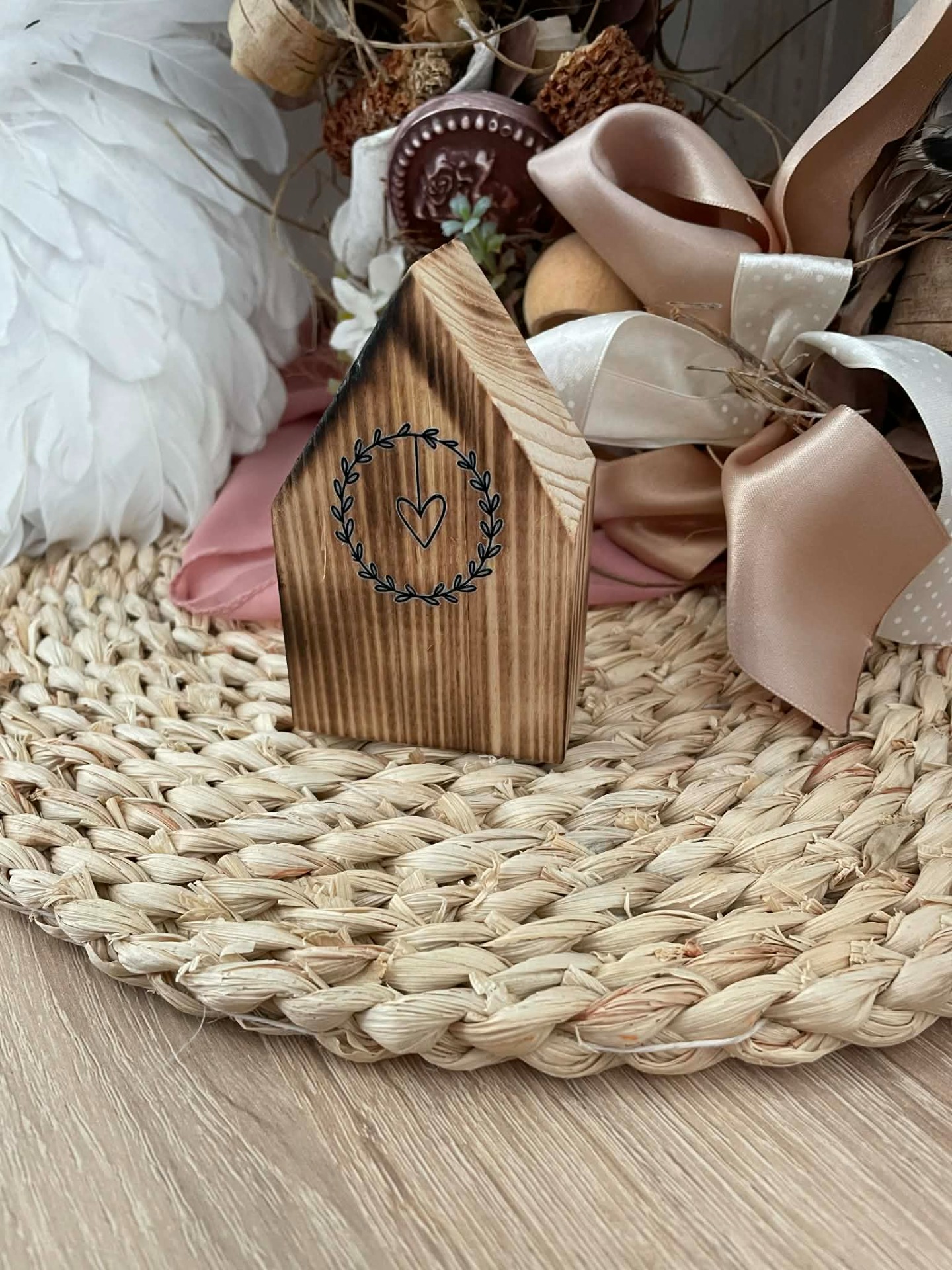 Dřevěný domeček s černým srdcem
